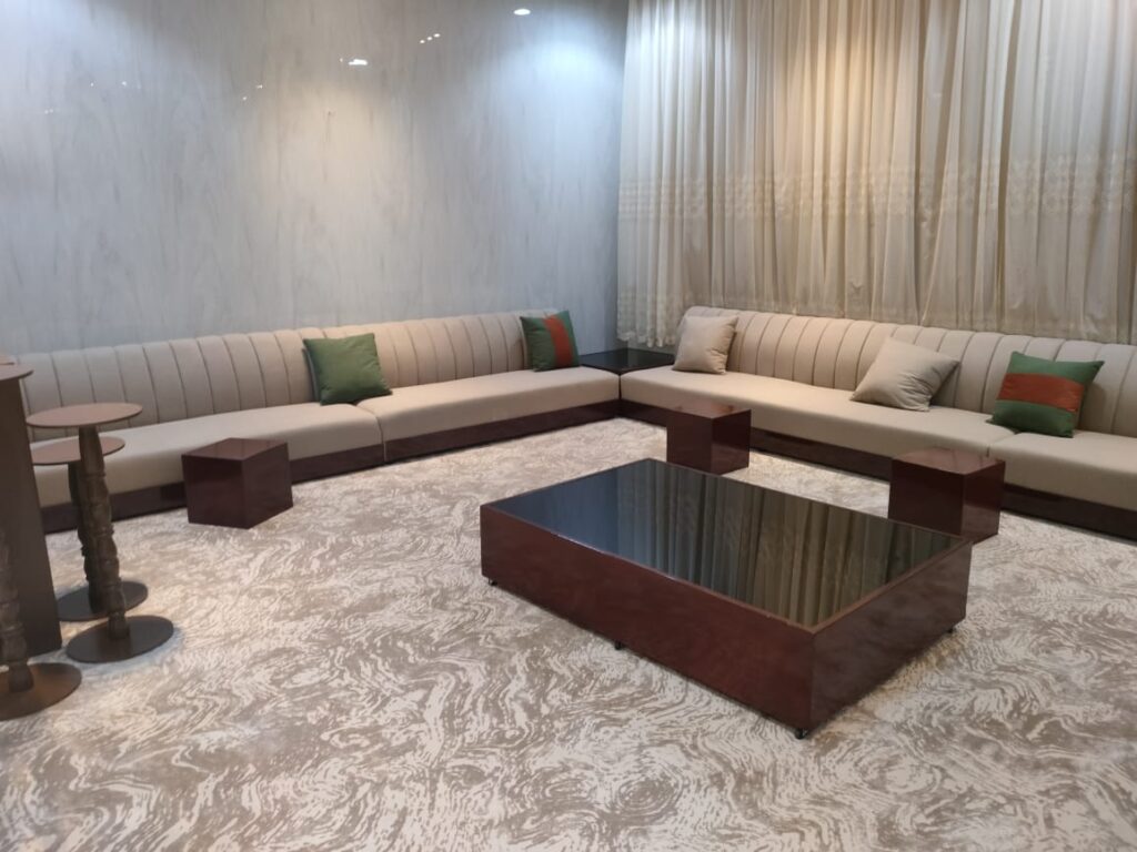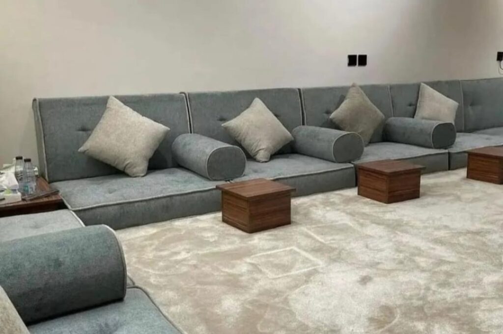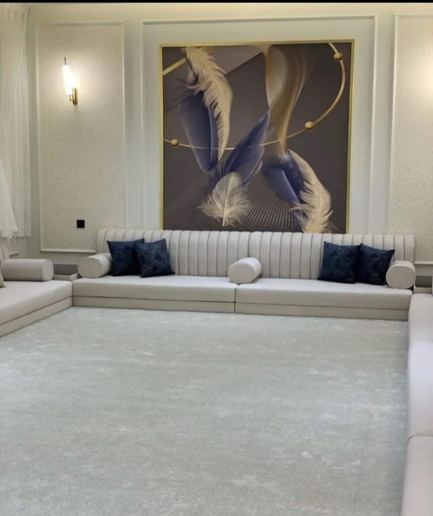 كنب مسلم فاخر بتصميم أنيق يجمع بين الراحة والفخامة، مناسب لجميع المجالس العصرية والكلاسيكية. متوفر بألوان متنوعة وخامات عالية الجودة لتمنح منزلك لمسة فنية مميزة. للتفصيل أو الطلب تواصل معنا الآن!